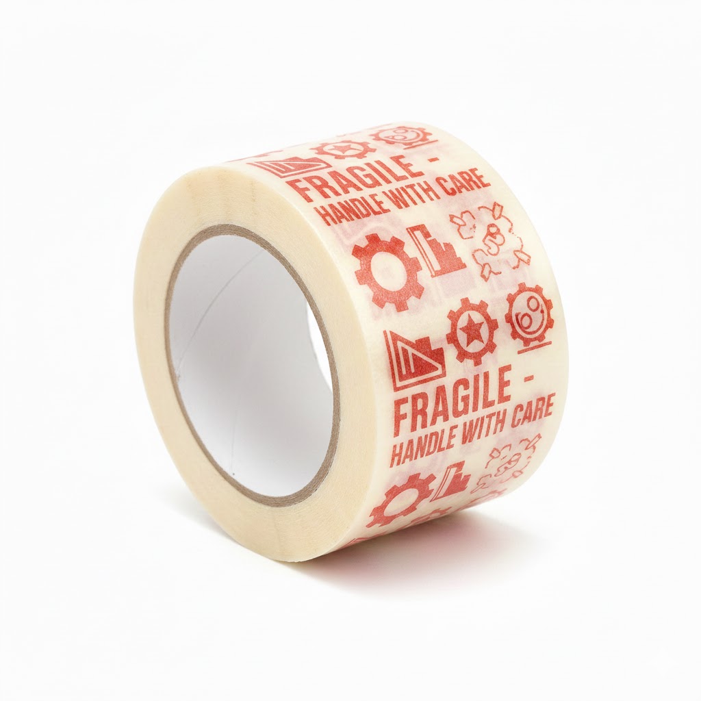 This Printed BOPP Packing Tape is crafted from premium Biaxially Oriented Polypropylene (BOPP) film and coated with a strong acrylic adhesive, with the capability to be customized with your logo or text as required. It combines reliable carton sealing with effective brand promotion, offering strong adhesion, smooth application, and long-lasting performance across various temperature and humidity conditions.